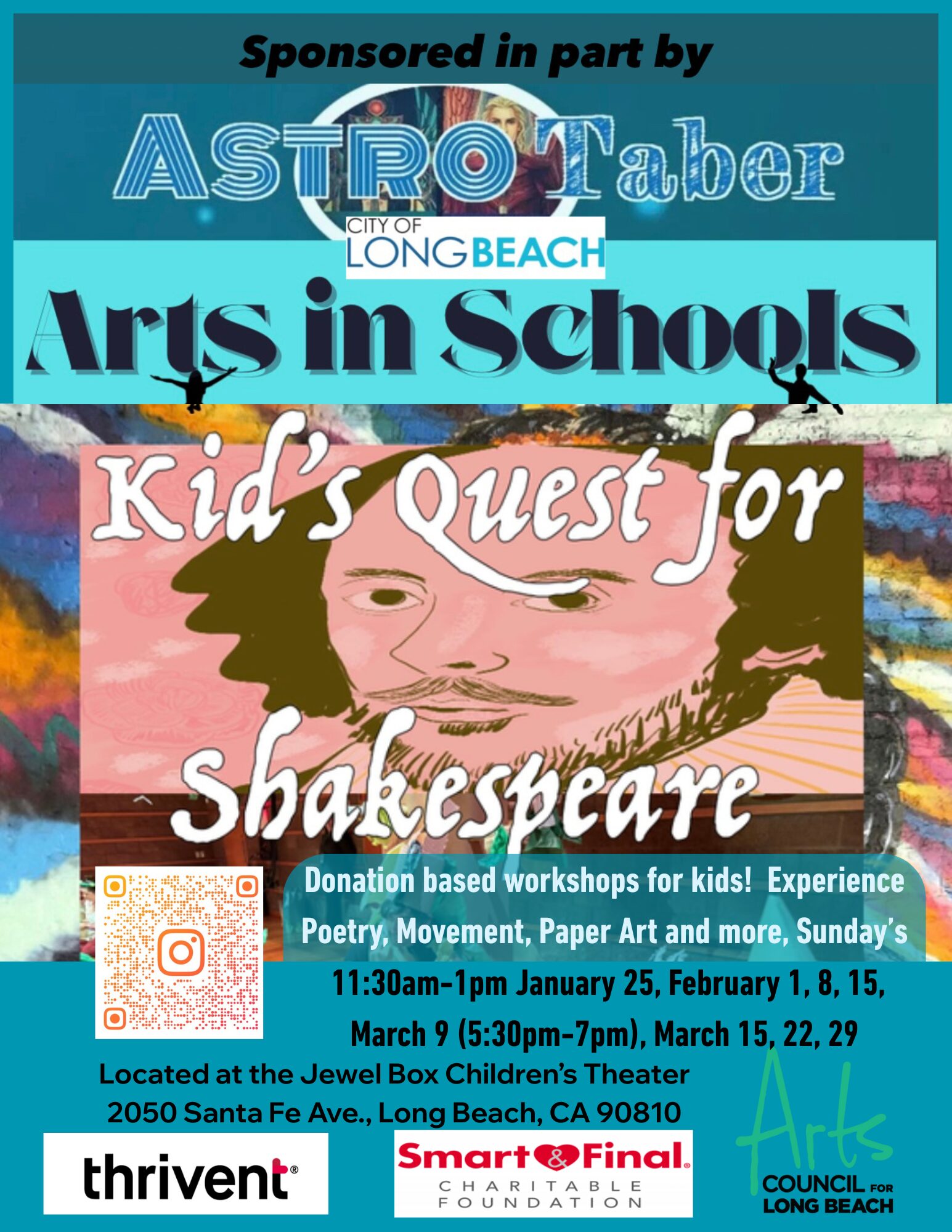 The Journey Begins Sunday’s January 25th, February 1st, 8th, 15th and March 9th (5:30-7pm), 15th, 22nd, & 29th 11:30am-1pm Ever wanted to explore Shakespeare in a fun abstract way? Come join in the artist process through poetry, movement, paper art and more! Let’s create a living art story together. Classes are donation based each day […]