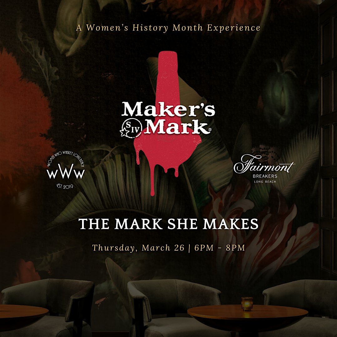In partnership with Maker’s Mark and Women Who Whiskey Long Beach, this limited-seating experience will feature a guided tasting of 3–5 Maker’s Mark expressions, thoughtfully led with narrative and education centered around the women shaping the whiskey world today.