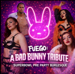 FUEGO: A Bad Bunny Tribute is a Super Bowl pre-show burlesque night produced by Dirty Little Secrets Burlesque, and it leans fully into what this weekend should actually feel like: loud music, bodies in motion, and unapologetic Bad Bunny energy.