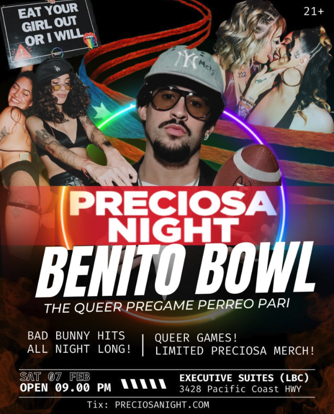 Between the Benito Bowl watch parties, the queer-led pre-game takeovers, and the burlesque Bad Bunny tributes, this city made it very clear: you are not required to suffer through sportsball culture to exist on Super Bowl weekend in Long Beach.